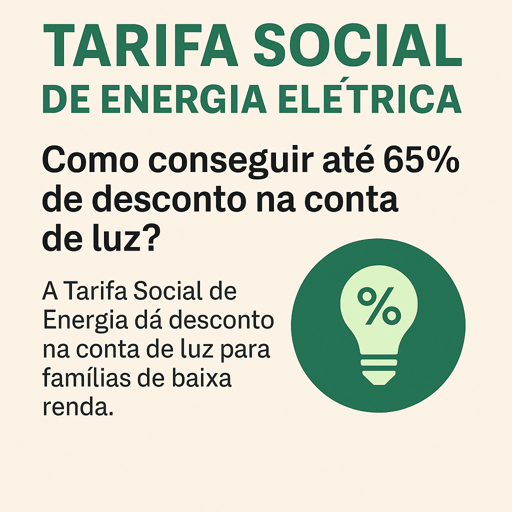 A Tarifa Social de Energia Elétrica é um programa do governo federal que oferece descontos de até 65% na conta de luz, especialmente para famílias de baixa renda inscritas no CadÚnico.